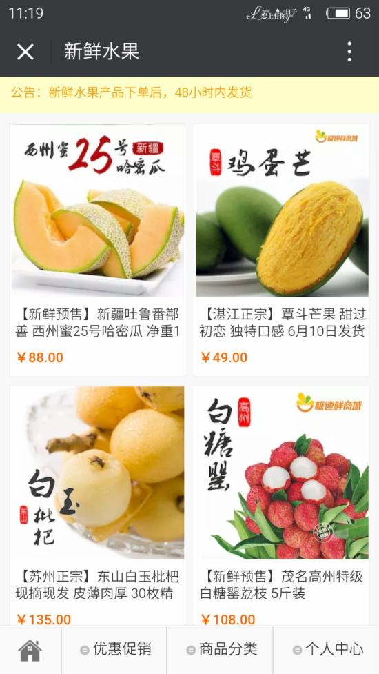 极速鲜主要由广东邮政方面运营,销售阵地主要集中在微信商城。目前,极速鲜微商城上线的商品品类包括水果、农特产、茶饮等。供应商来自广东、广西、山东、江苏等多个省。